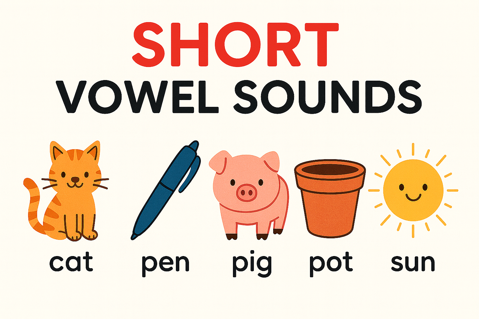 파닉스의 출발점은 바로 단모음(Short Vowel) 학습입니다. 단모음은 알파벳 모음(a, e, i, o, u)이 단독으로 발음될 때의 짧고 단순한 소리를 말합니다.